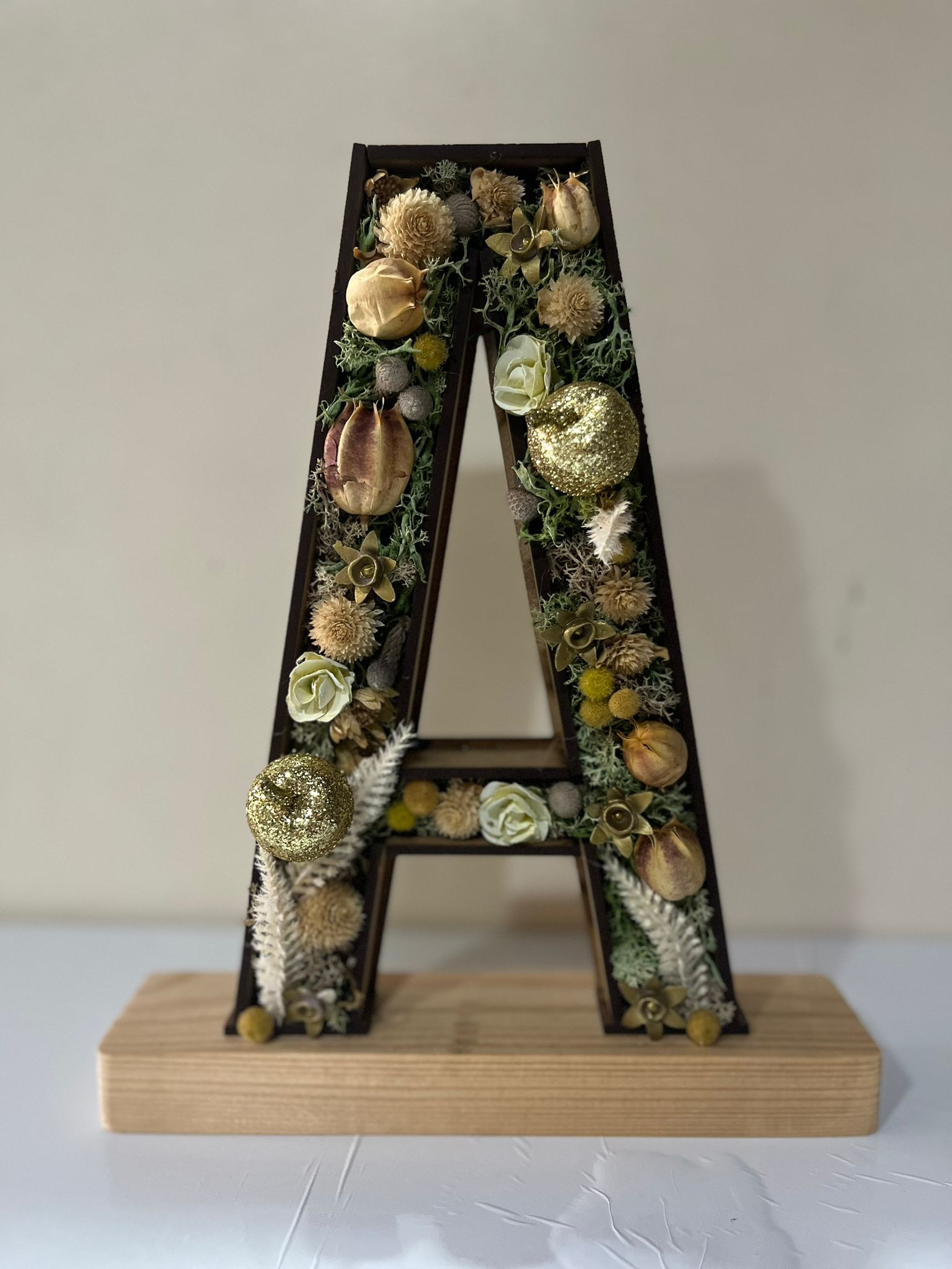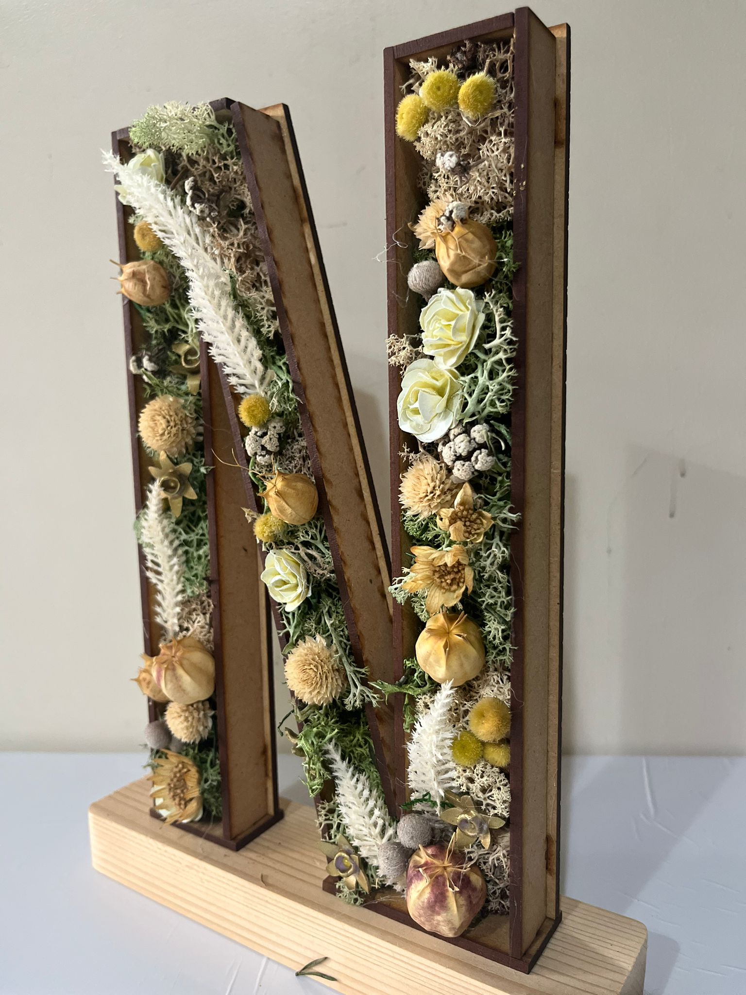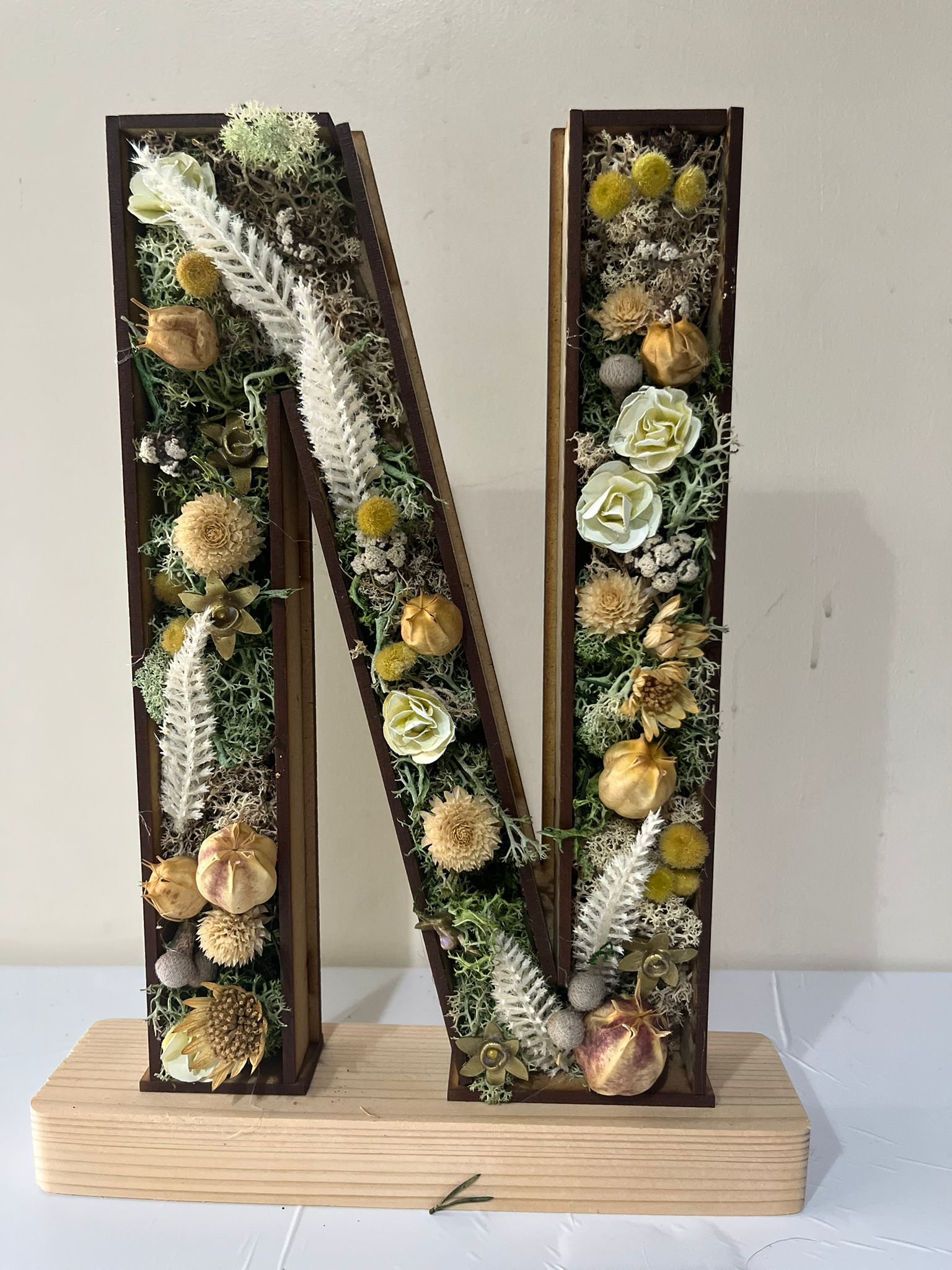 Tu letra llega protegida en una caja de cartón y envuelta elegantemente con papel seda y kraft. Incluye hoja de cuidados básicos y tarjeta de cortesía para dedicatoria.